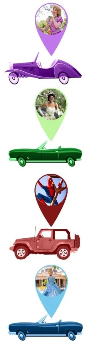 Parades start at $930 and include the requested available characters in a high end, classic or modern vehicle based on availability that fits the feel of the character. We also include signage, music, and other creative elements required to enhance the experience as well as the necessary insurance coverage to ensure the safety of all involved. For shorter parade routes or by request, a time of photo ops with the characters and their vehicles in a central location may also be available.